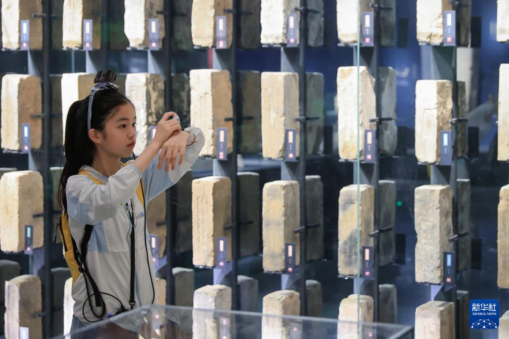 7月7日,一名小朋友在南京城墙博物馆参观。