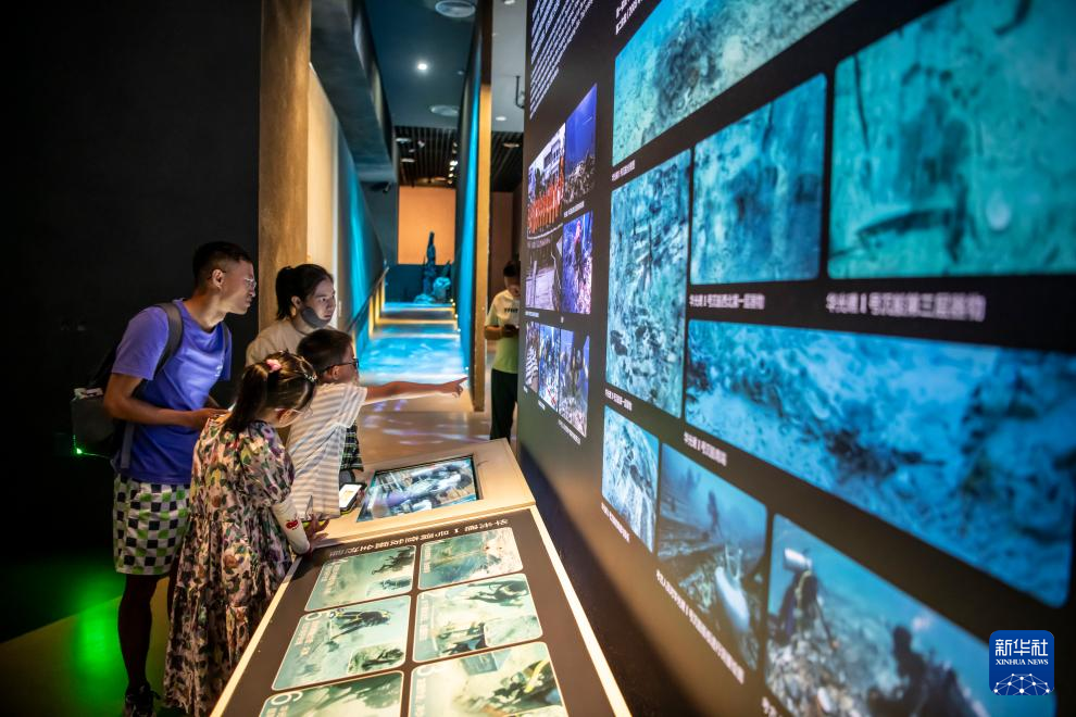 7月6日,家长和学生在中国(海南)南海博物馆参观。