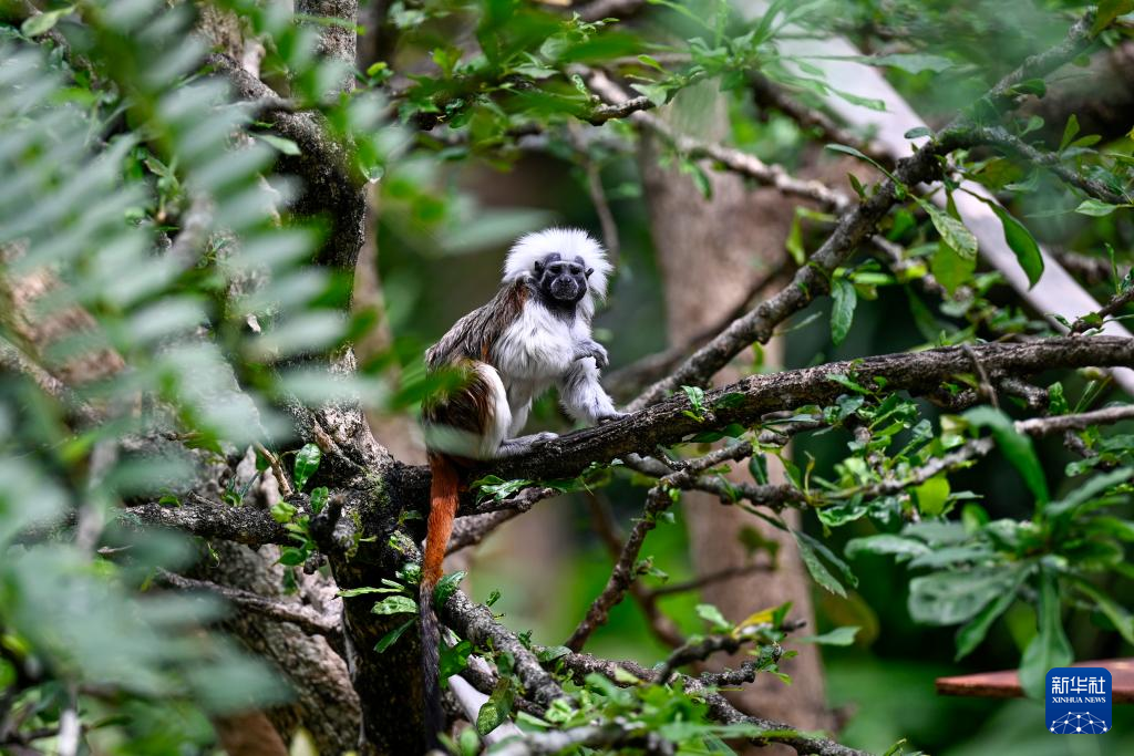 这是10月24日在哥伦比亚卡利动物园拍摄的棉顶狨猴。