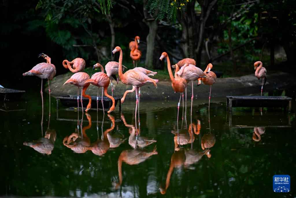 这是10月24日在哥伦比亚卡利动物园拍摄的美洲火烈鸟。