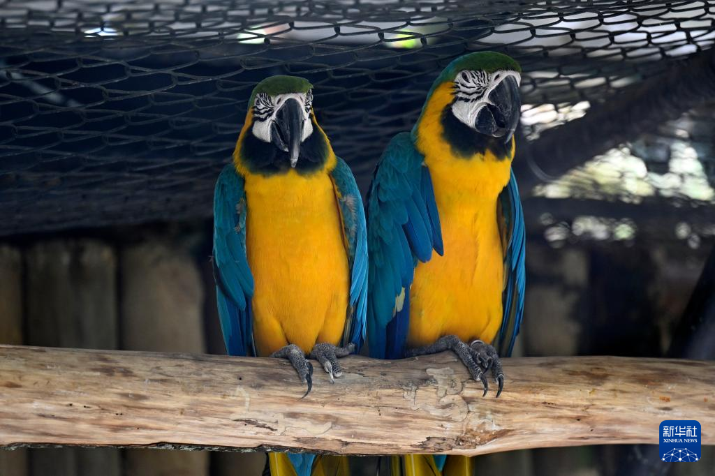 这是10月24日在哥伦比亚卡利动物园拍摄的金刚鹦鹉。
