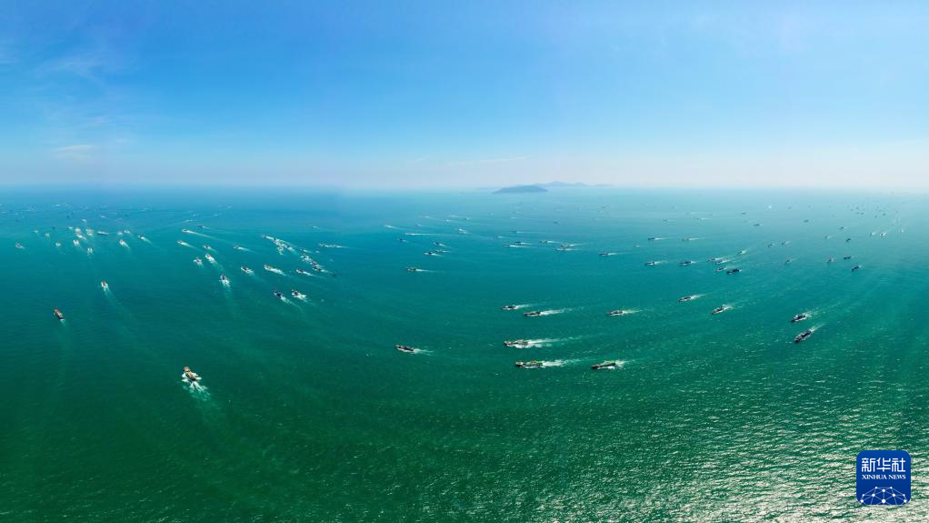 8月16日,福建省福州市连江县黄岐、苔菉两个中心渔港开渔出海的渔船在海面航行(无人机照片)。