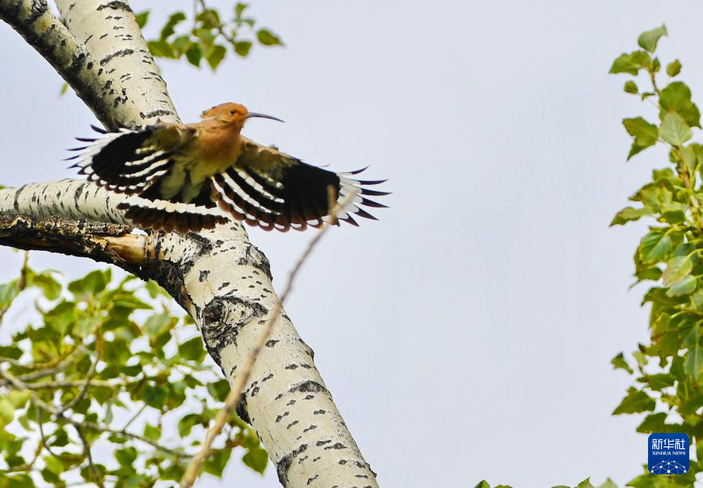在西藏拉萨市,戴胜在杨树间"飞舞"(9月7日摄)。