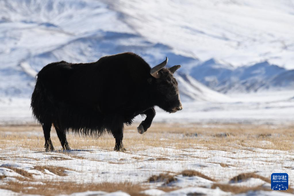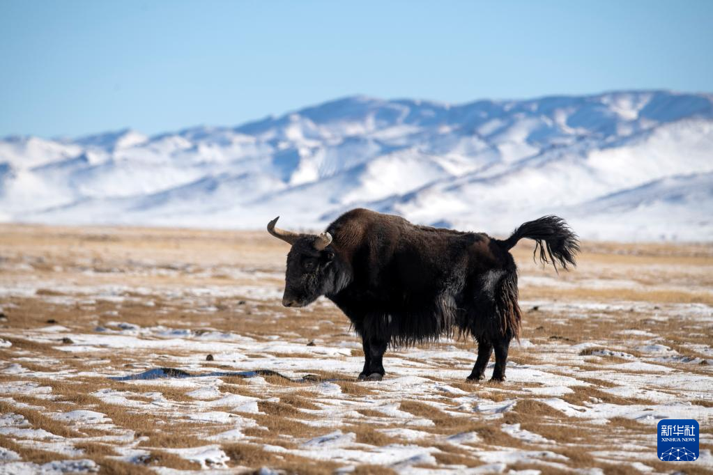 12月17日,野牦牛在哈尔腾高原上活动觅食。