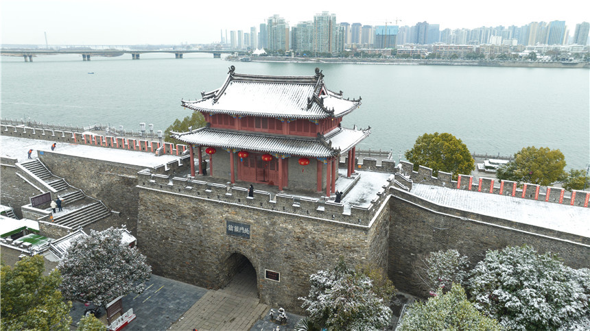 1月15日,雪后的湖北襄阳古城,银装素裹,景色如画。