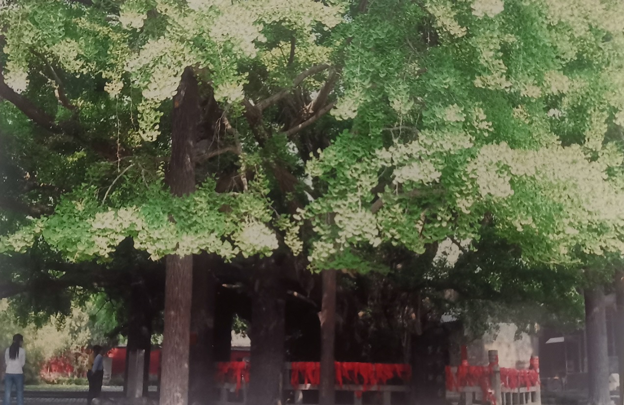好像是1998年的初秋,在临沂市农委刘沂兄的邀请并陪同下,我参观了莒县(今属日照市)定林寺的古银杏。这株银杏高不足30米,干粗竟须10余人才能合抱,枝条四展,密叶繁荫,垂果累累,覆盖近半亩之广,致使30米高的大树不仅不见其高,反显其低矮,实为我生平所见古银杏中绝无的壮观,也是我生平所见古名木中第一的稀有!据说树龄已有三千余年,《春秋》隐公八年(前715)九月辛卯,鲁隐公与莒子会盟,以和亲平息两国间的干戈,即在这棵树下举行。南北朝时代,《文心雕龙》的作者刘勰晚年出家,法名慧地,亦栖息于此地而终。1962年为纪念《文心雕龙》成书1460周年,还曾在这里举办过隆重的纪念活动。我曾写过一首绝句来表达自己的感动之情: