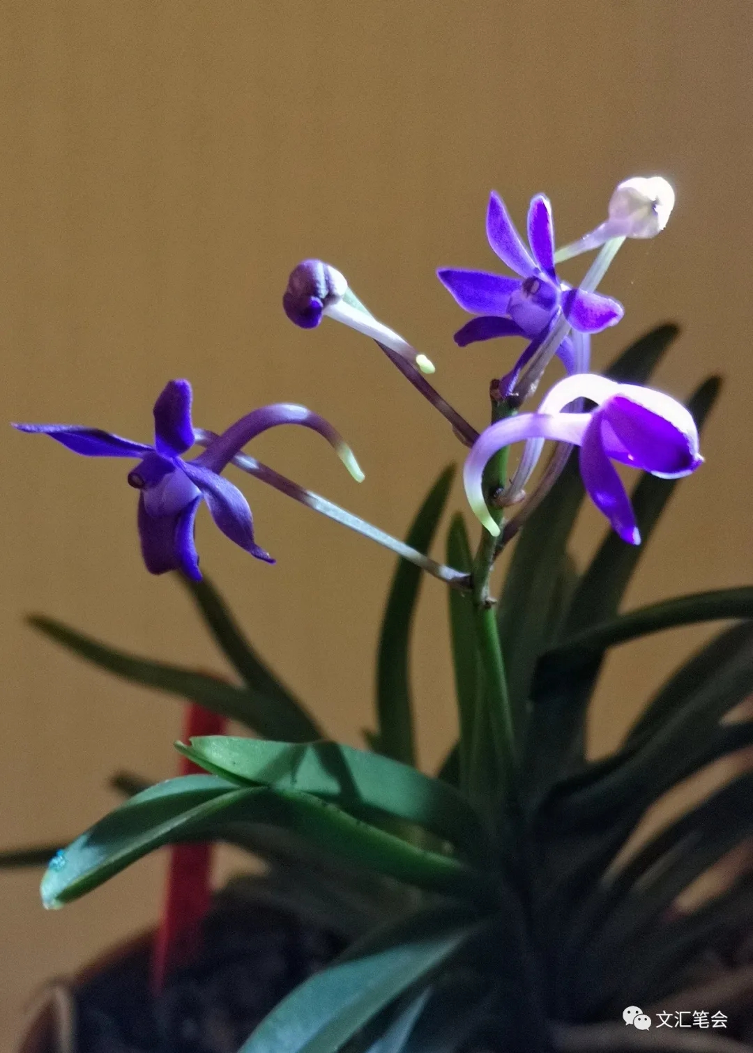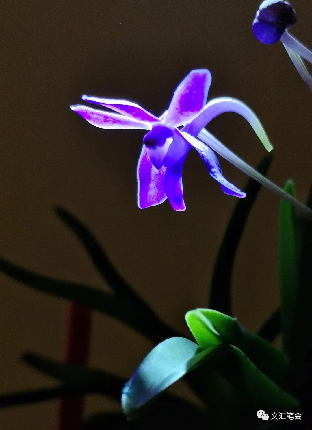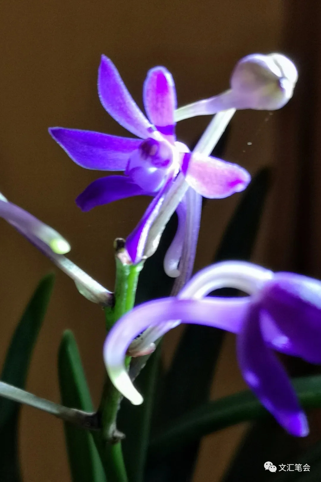 在养了一种白色的中国风兰之后,我为风兰小巧的株型、精致奇特的花朵构造和芬芳的香味所打动,就想栽培下其他颜色的品种,最后选了一种日本的杂交风兰“露·司聂丽”(Neostylis Lou Sneary)。它是日本风兰和蓝色立梗狐尾兰的杂交种,外观完全像风兰,但花朵是少有的蓝紫色,也是我所喜欢的颜色。