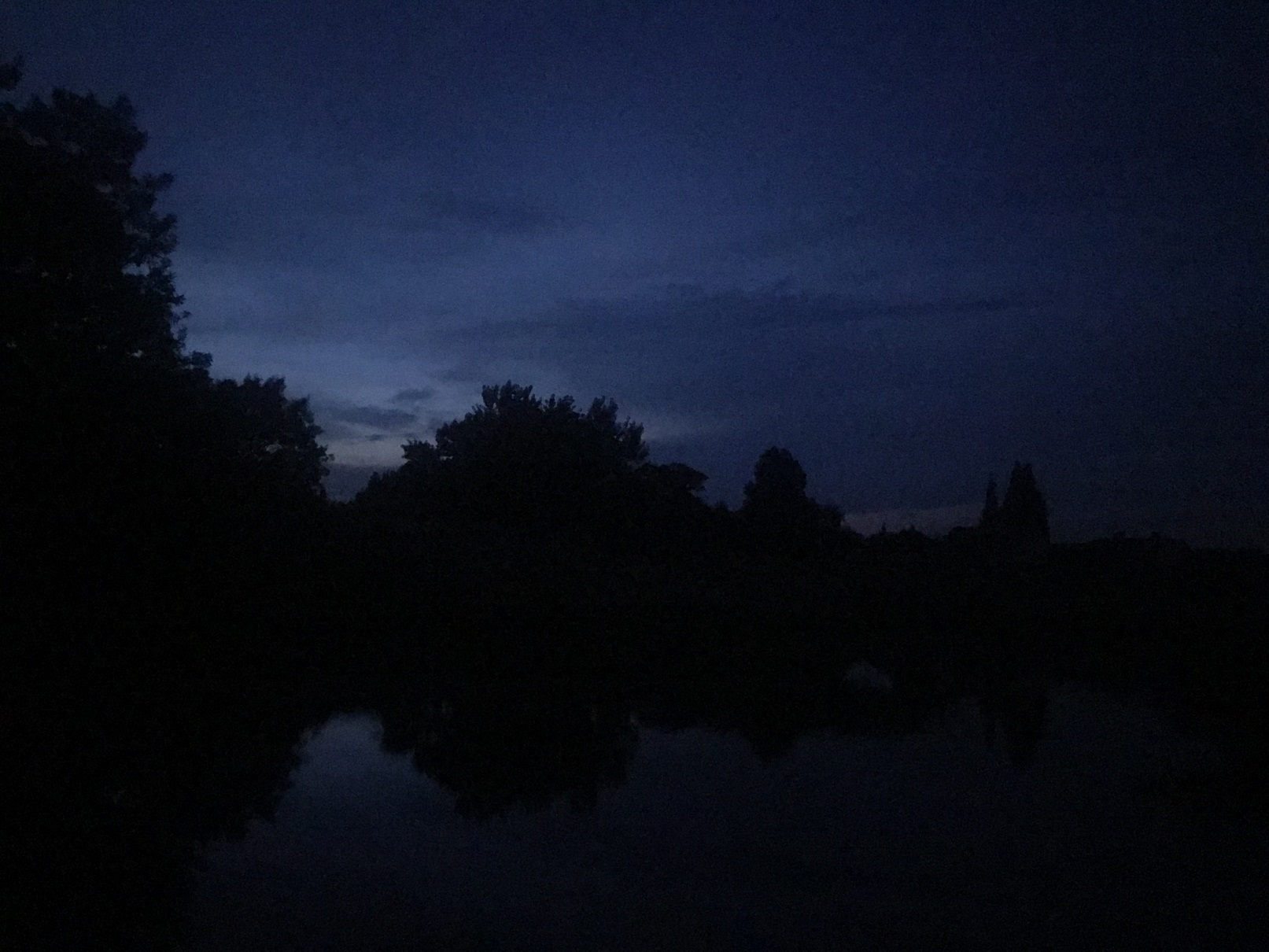 由肖白乡道往南转入宝成线,天就完全黑透了。匡埠村出来消食的人寥寥无几,月亮升到小澴河堤上,北斗七星映入后视镜,稻田中各处村庄漆黑无声,夜气上升,蜘蛛归网,蚊柱退散,蝙蝠回到房檐,池塘里白鱼不再泼剌甩尾,青蛙与蟋蟀的鸣声,在秋分夜里都变得低沉,路边的泥壤与草莽散发土腥的气味,好像各处坟地里的鬼神们已经在扯鞋装衣,就要接替下半场的星夜漫游。我心惊胆战地回村,驻车,开门,摸黑上楼梯,不看书,不写字,连从前用投影仪看电影的兴趣,都变得索然,在兀然降临的洪荒里,拉开被子,倒头就睡。