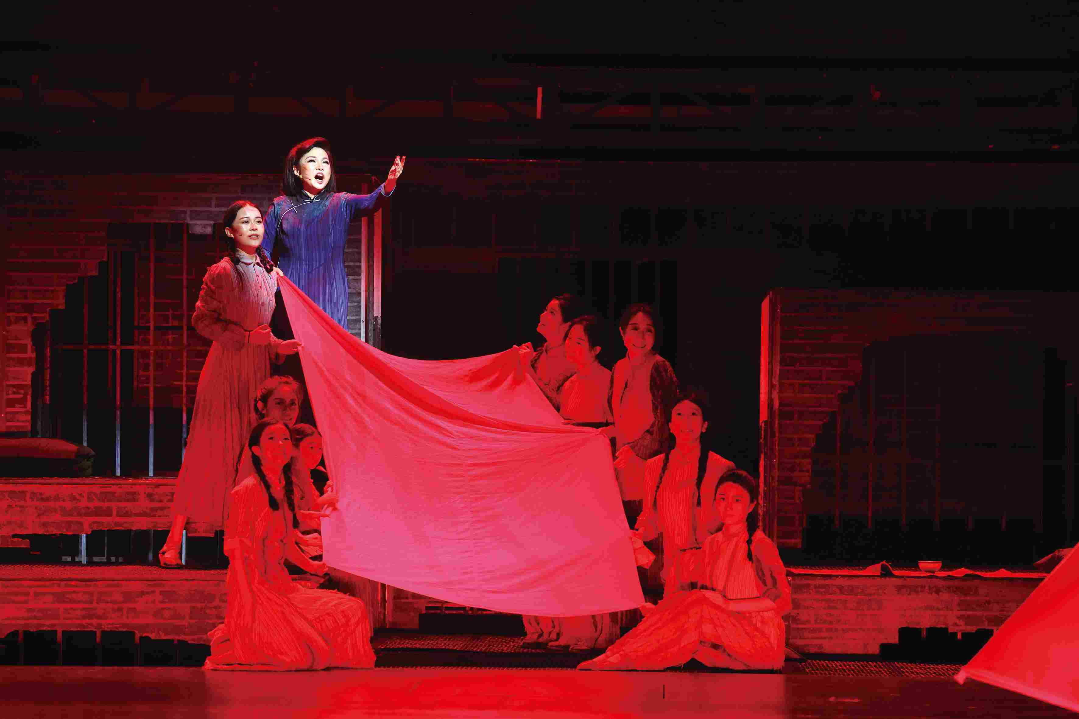 大戏开场,恢宏壮丽的舞台、激情炫目的歌舞,人们随着音乐和剧情瞬间被带入那个激情燃烧的岁月。在编排上,音乐剧《江姐》集音乐、戏剧、舞蹈、舞美、多媒体艺术于一体,让戏剧层次更加分明、细节更加丰满。在音乐上,作品唱段旋律、调式、配器、唱法、结构根植于现代流行文化,又巧妙植入了《红梅赞》等过往歌剧《江姐》的旋律线索,尤其注重唱词推动情节与抒情达意的辩证关系,令人回味无穷。