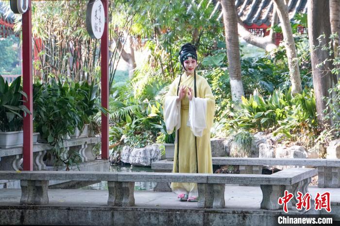 中新网桂林12月11日电(蒋丰慧)12月10日至11日,在广西桂林市古南门之畔的湖心岛,昆曲演员乘船而来,随着悦耳的丝竹声响起,沉浸式昆曲《浮生六记》厅堂版在桂林山水间上演。